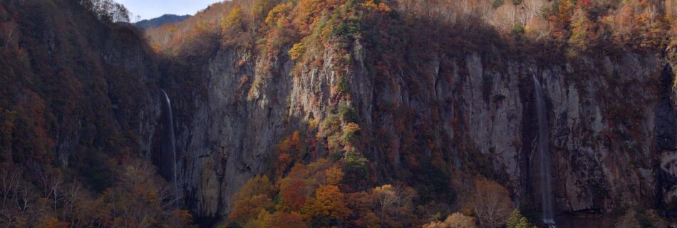 称名滝(しょうみょうだき)は、富山県 立山町にある立山連峰を源流とする滝。その落差は350mで、日本一を誇る。国指定の名勝および天然記念物。 Translate with DeepL title: 称名滝 autumn …